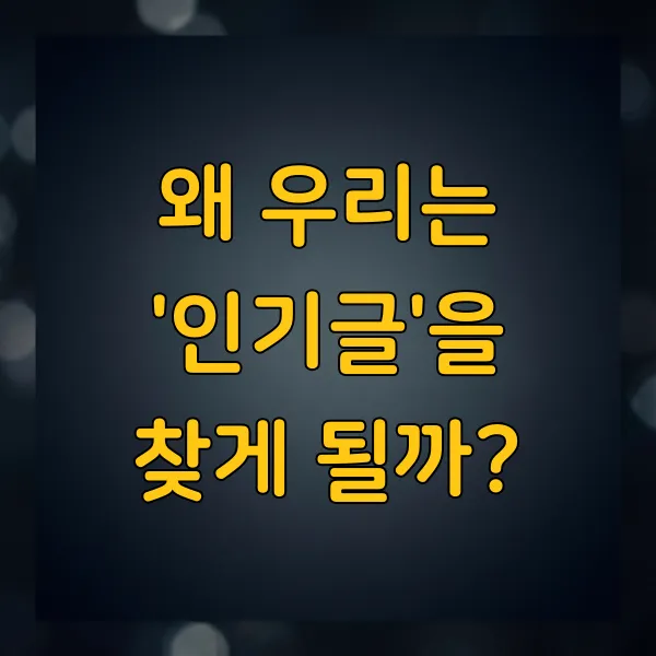 솔직히 시간은 금이잖아요. 수많은 글 중에서 뭘 봐야 할지 일일이 고르는 건 너무 피곤한 일이에요. 그래서 '인기글'이라는 꼬리표가 붙은 글들에 눈길이 갈 수밖에 없죠. 많은 사람들이 '좋아요'를 누르고 댓글을 달았다는 건, 그만큼 많은 사람들에게 흥미롭거나 유용하다고 인정받았다는 뜻이니까요. 이건 마치 검증된 맛집을 찾아가는 것과 비슷하다고 할 수 있어요. 실패할 확률이 상대적으로 적으니까요.